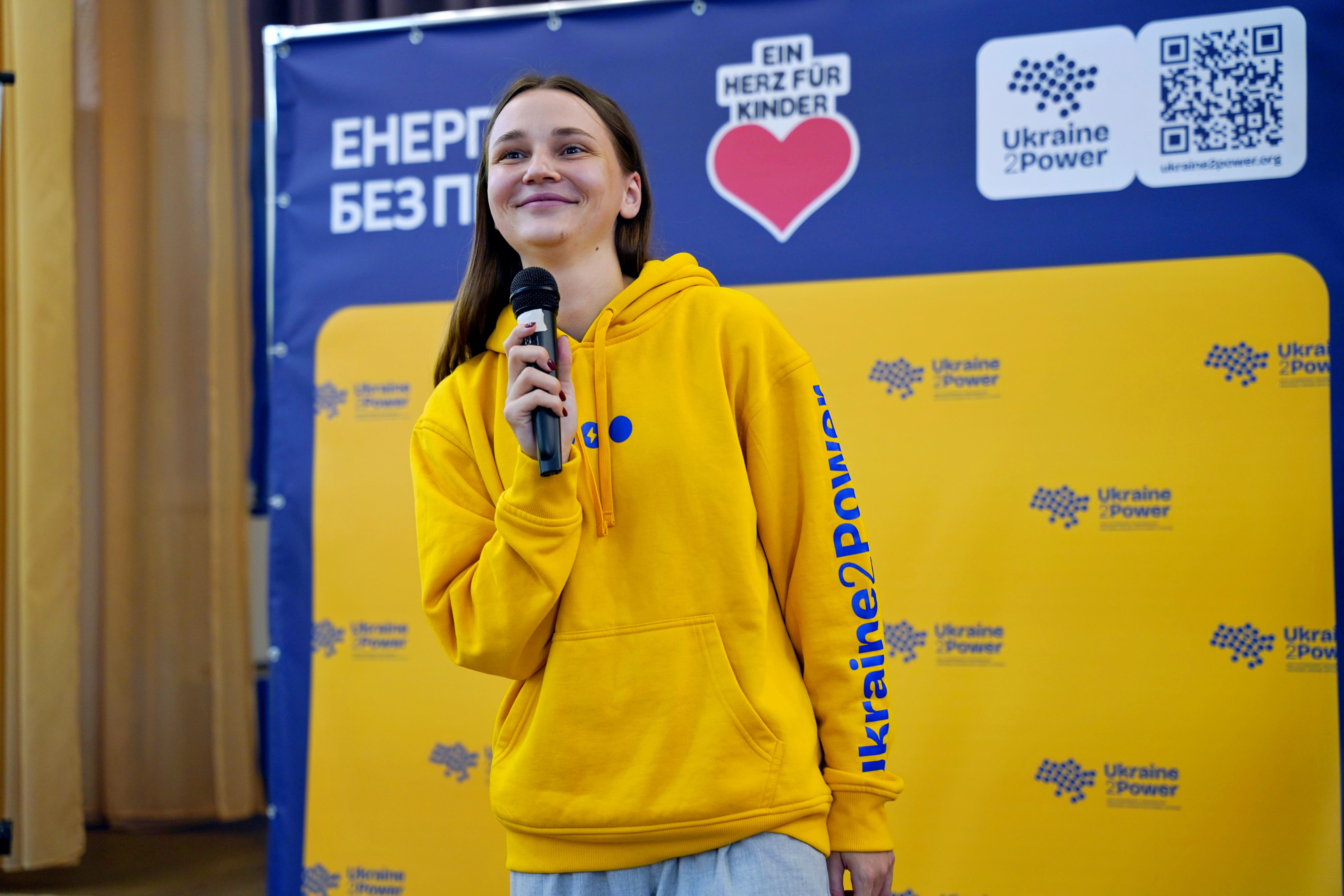 Anna now lives at the Lyceum together with other displaced children. “Before, when there were power cuts, the school sometimes used a generator,” she adds. “But now, with the new system, we’ll always have electricity.”
