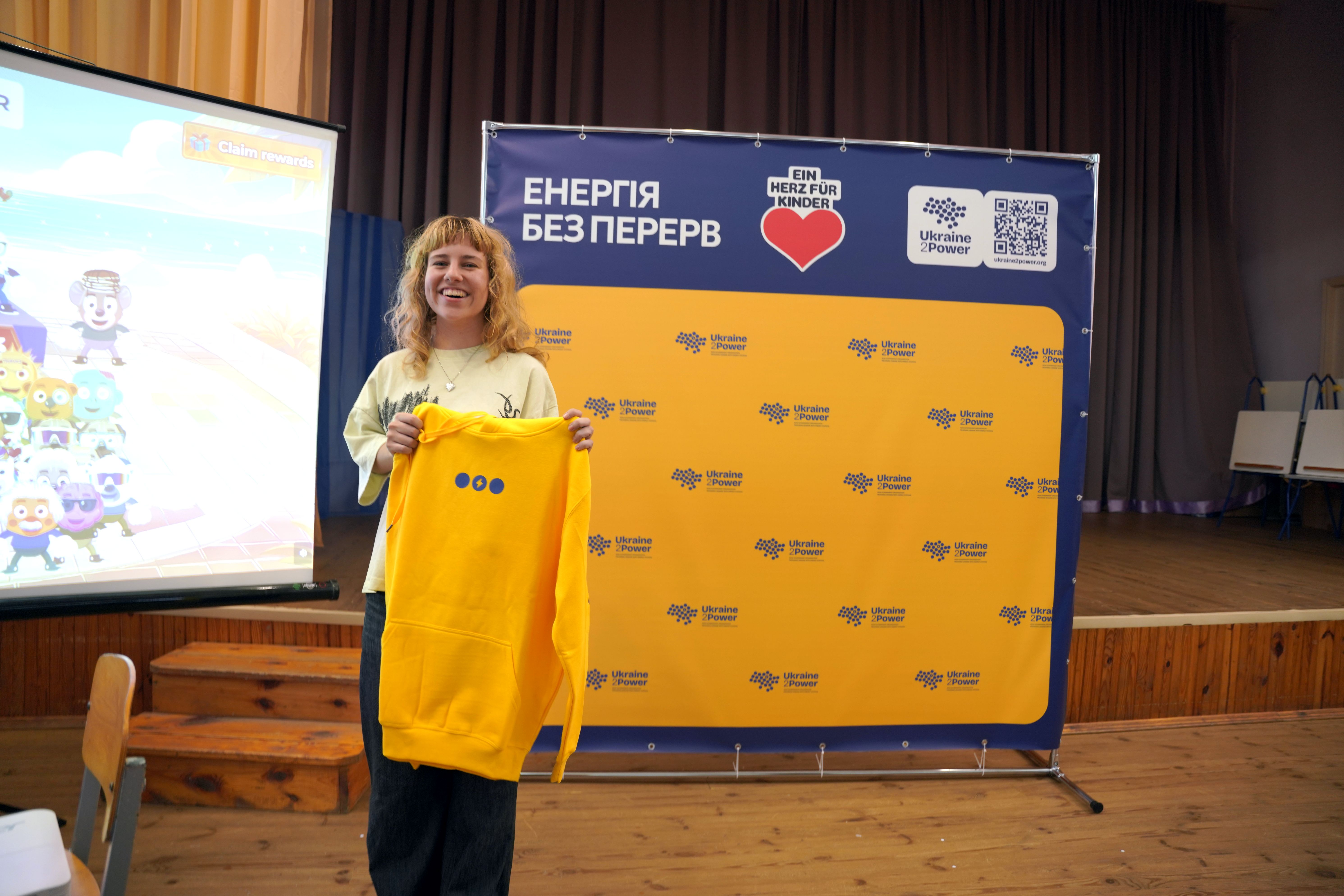 During the opening, Ukraine2Power held an interactive session on renewable energy for 70 students. They learned how sunlight is converted into electricity and how clean energy benefits people and the planet. Ukraine2Power also organized a small quiz and competition about renewable energy. The students participated with great enthusiasm, answering questions, sharing what they had learned, and winning small prizes for their active engagement. Students later created thank-you cards in German for the donor organization, heartfelt messages from children who finally have light again.
