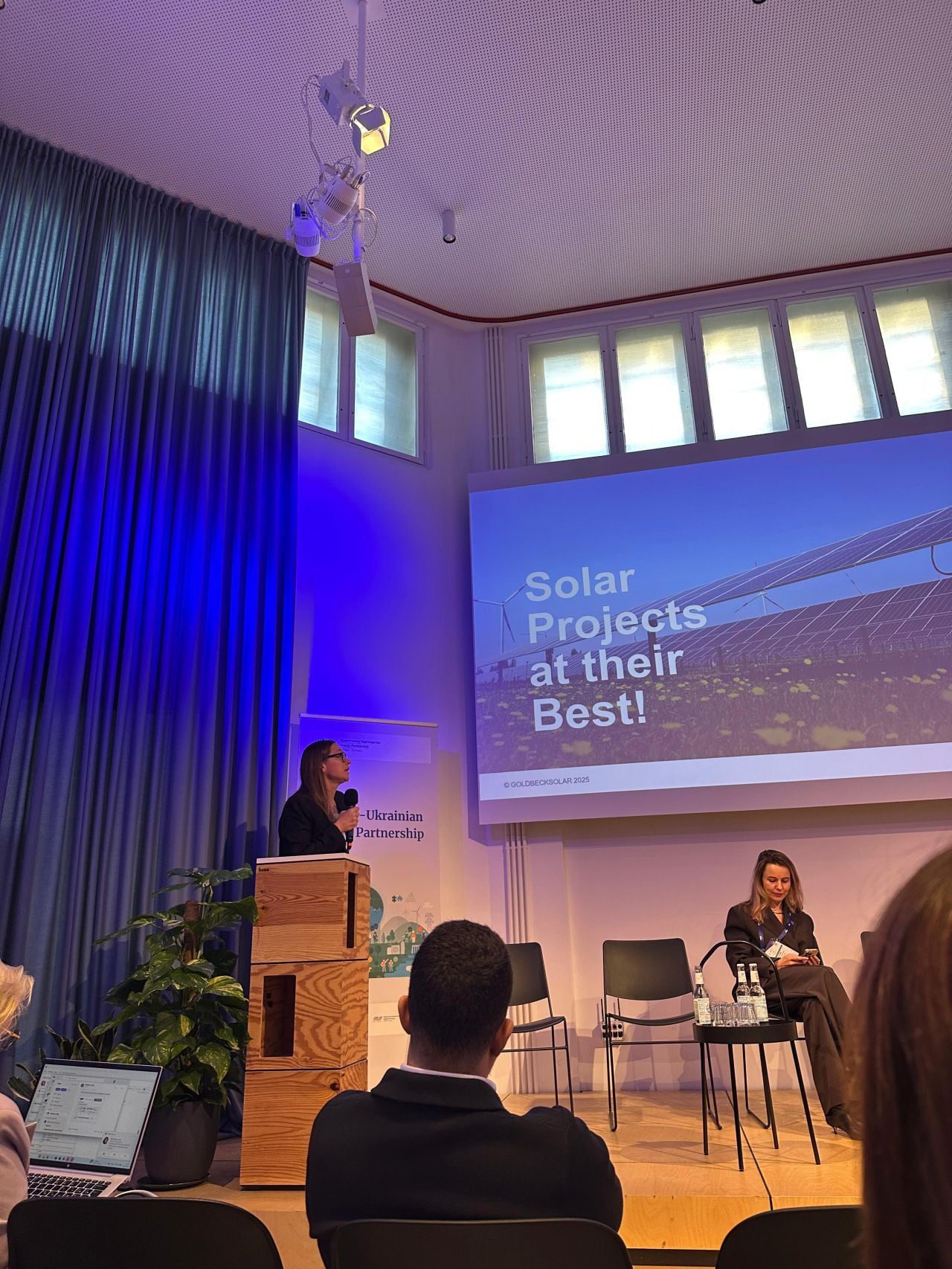 Наталія Фібріг бере участь у заході, представляючи Ukraine2Power. Наша команда переконана, що сонячна енергетика та системи зберігання енергії є ключовими для енергетичної безпеки громад — особливо для лікарень, шкіл та дитячих садків. Це має особливе значення в умовах, коли тривають російські атаки на енергетичну інфраструктуру України, і питання стійкості стає критично важливим.